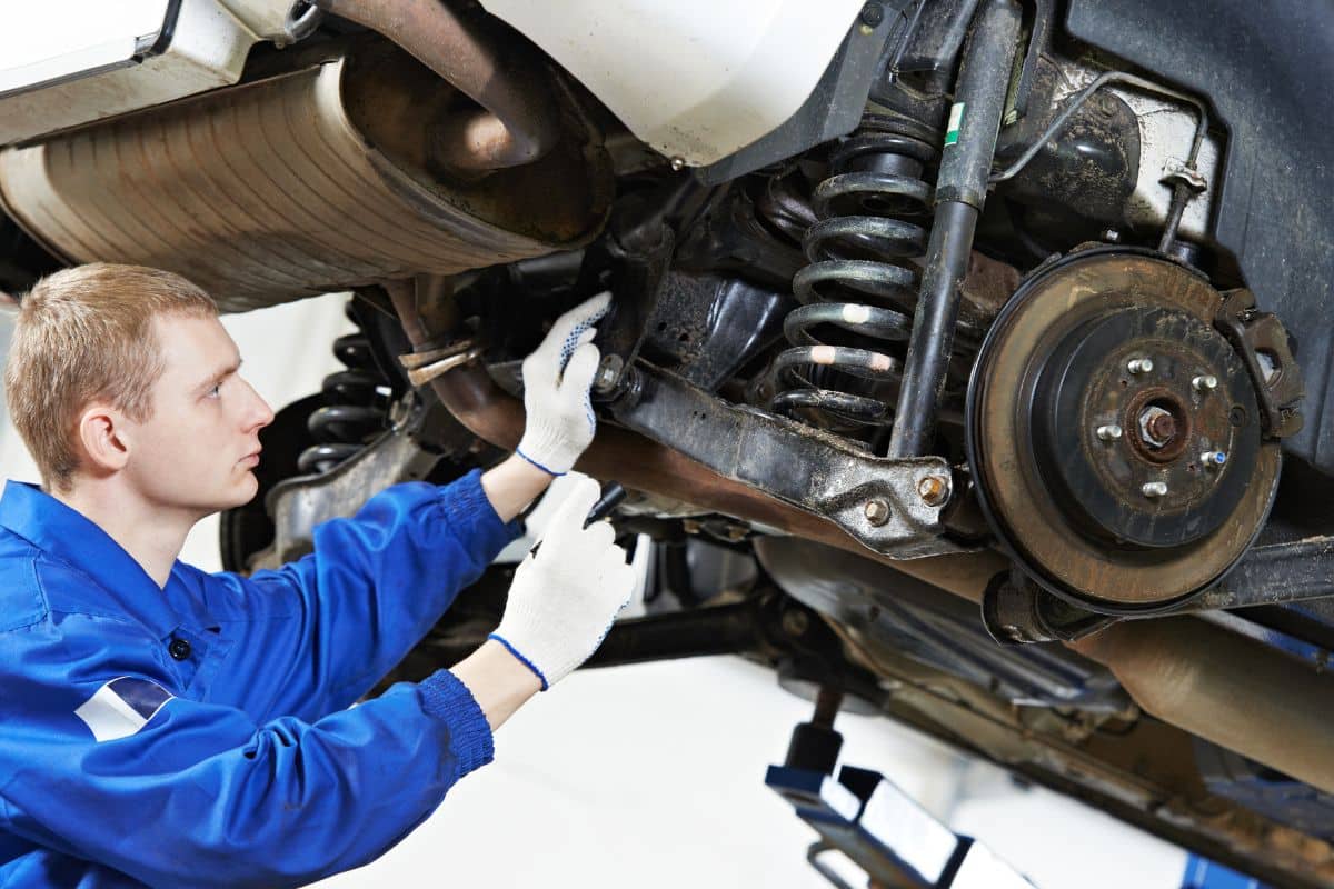 - Mechanical inspection — bushings, arms, bearings, and wheel alignment check.